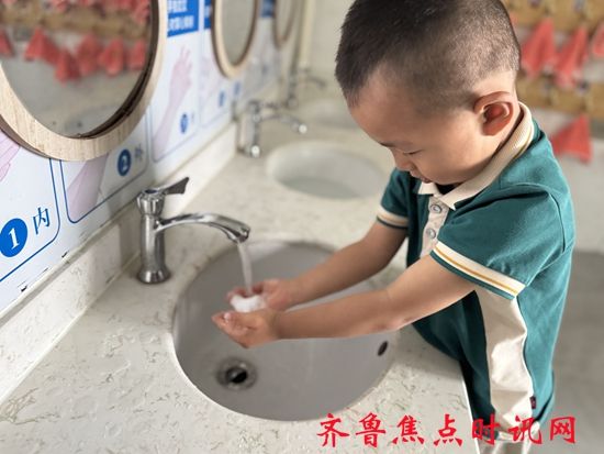 东营区文汇街道中心幼儿园托班开展了一场以“‘手’护健康,从小做起”为主题的洗手活动。