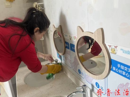 东营区文汇街道中心幼儿园托班教师开展了班级全面大扫除及消毒工作,全力营造安全健康的校园环境。