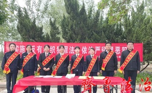 利津县法院参加县委政法委组织的联合普法团队,走进热闹的三里大集开展“民法典与反有组织犯罪法”联合普法活动