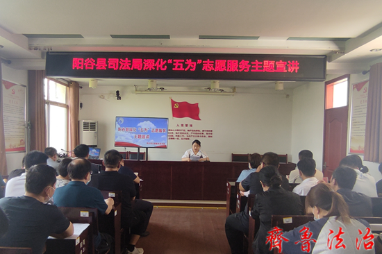 6月20日上午,聊城阳谷县志愿服务队宣讲团成员、博济桥司法所张琦同志,在县司法局三楼会议室以深入开展“五为”志愿服务--“初心不改 司法为民”为主题,为全体干警送上了一场宣讲大餐。