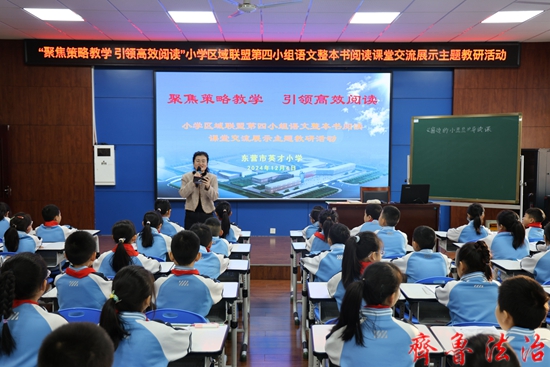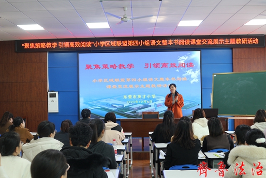 齐鲁法治(东营)陈国兰 为贯彻落实新课标理念,把握整本书阅读学习任务群的方向,探索科学有效的“整本书阅读”教学策略,提升教学设计和实施能力,提高学生的阅读素养,增强区域联盟校际间的交流与合作,12月4日,东营市英才小学承办了“学为中心”区域联盟第四小组小学语文课堂交流展示主题教研活动。