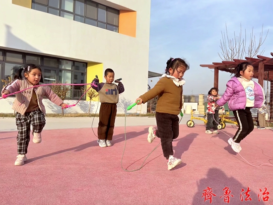 齐鲁法治(淄博)陈国兰 随着冬天的脚步悄然而至,天气逐渐转冷,但山东淄博高青县木李学区幼儿园大二班的孩子们却以“跳绳”这项户外体育活动,驱散了冬日的寒意。