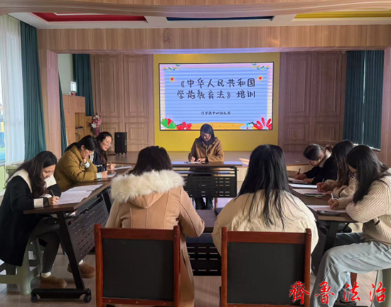 东营市利津县汀罗镇中心幼儿园组织全体教师学习了《中华人民共和国学前教育法》。