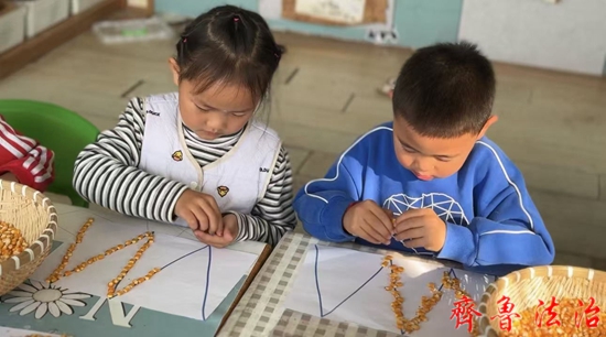 齐鲁法治(东营)赵永翠 近日,东营市利津县汀罗镇北码社区幼儿园开展了一项别开生面的活动,旨在通过让孩子们亲手剥玉米粒,并利用这些玉米粒按照老师设计的图形进行摆放,以此锻炼孩子们的控笔能力和动手能力。