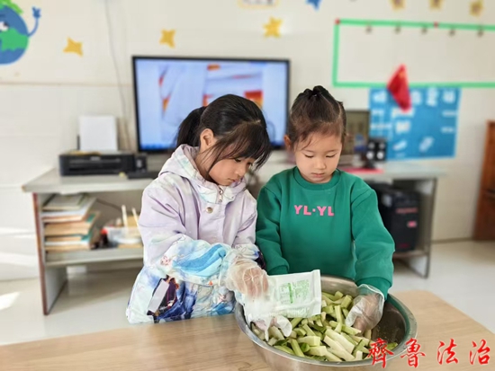 齐鲁法治(淄博)赵永翠 近日,山东淄博高青县木李学区中心幼儿园混龄一班,举行了“小小厨师”腌萝卜活动,幼儿园内洋溢着一股温馨而欢快的气氛,一场别开生面的“腌萝卜”活动在此展开。