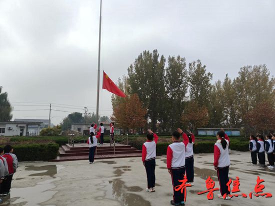 升旗手、护旗手们迈着整齐有力的步伐将国旗护送至升旗台。国歌奏响,全体师生面向国旗行注目礼,少先队员行队礼,气氛庄严而肃穆。