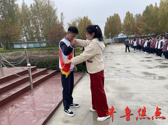 9.2班班主任潘科蓓为侯明泽同学佩戴绶带