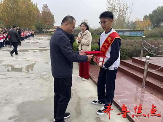 齐鲁法治(淄博讯)李贺 2024年11月11日,桓台县起凤中学传来喜讯,九年级二班的侯明泽同学凭借优异的综合表现,成功被桓台一中提前录取,成为全校瞩目的焦点,被授予“起凤骄傲”荣誉称号,上午举行隆重颁奖仪式。