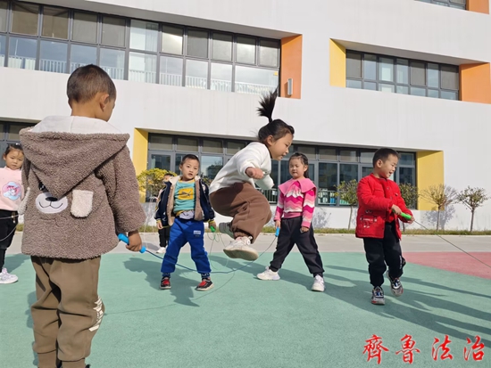 齐鲁法治(淄博)赵永翠 11月21日一大早,迎着初冬的朝阳,山东淄博高青县木李学区中心幼儿园的孩子们在开展户外体能锻炼。