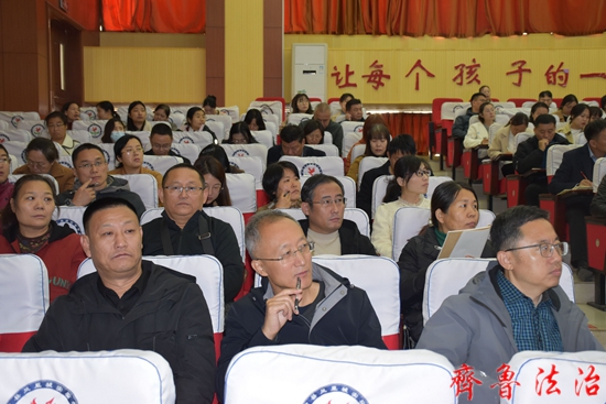 接着,东营市教科院魏相清老师做了《基于课程标准的初中数学教学设计》的专家报告,从课程标准的结构变化、课程标准的目标变化、课程标准的内容变化等多方面、多层次的对初中教学设计的方向进行了阐述和分析。他还对《山东省初中数学课堂教学评价量表》、《东营市初中数学课堂教学评价量表》进行解读学习,并结合大量案例,对最新的课堂教学理念和教学实践进行定位和阐述,受到与会老师的称赞。