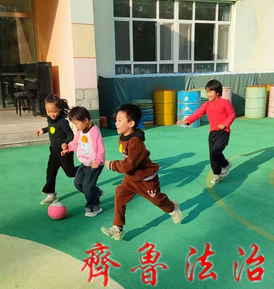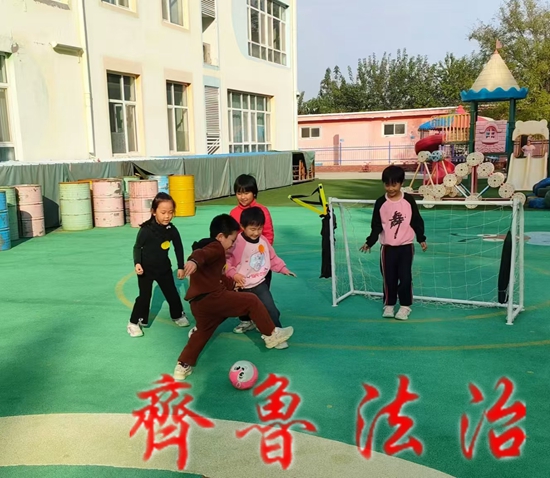 齐鲁法治(淄博)田家礼 高青县花沟学区中心幼儿园大二班举办了一场充满活力与欢乐的幼儿踢足球活动。