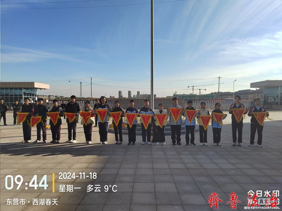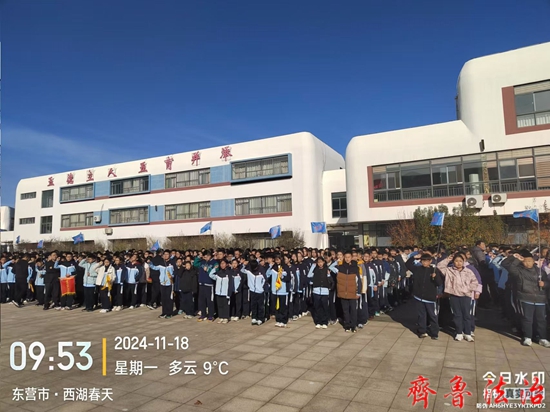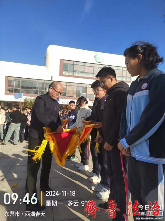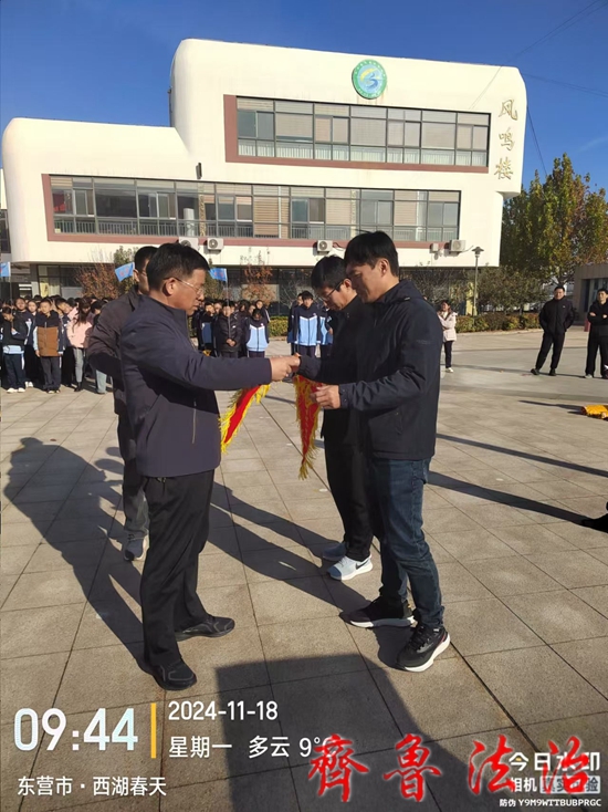 齐鲁法治(东营)赵永翠 为了加强对班级的管理,促进学生养成良好的行为习惯,巩固文明校园的创建成果,2024年11月18日上午,东营市利津县凤凰实验中学利用升旗仪式时间在和美广场召开了2024-2025学年度第一学期第二阶段表彰大会。利津县凤凰实验中学党总支书记岳长收、校长付强、副校长劳新成、赵科、政教处主任王海波、艺体组主任薄其军以及全体师生共约2000余人参加了会议。