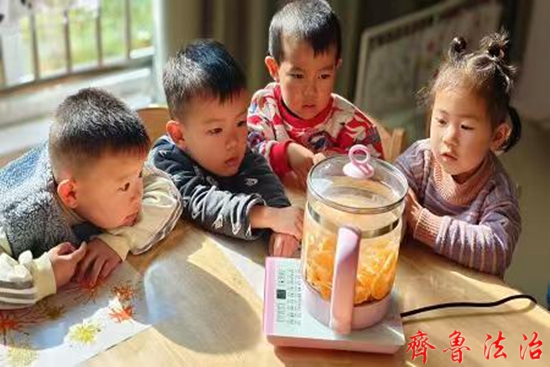 齐鲁法治(淄博)赵永翠 随着立冬节气的悄然来临,2024年11月7日,山东淄博高青县木李学区中心幼儿园小班迎来了一场别开生面的活动——煮制橘子冰糖茶。在这个寒风渐起的季节里,孩子们通过亲手制作这一传统饮品,感受了立冬的温暖与甜蜜。