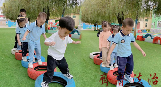 在课程设置上,精心开发红色教育课程,红色歌曲、红色手工等活动丰富多彩。一首《红星闪闪》,唱出孩子们对党的热爱;一部部红色电影,让孩子们记住那段艰苦又伟大的岁月。结合园所实际深入挖掘本地红色资源,孩子们通过“过草地”“爬雪山”等活动,体验革命的艰辛,传承红色基因。