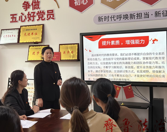 新河镇灰埠中心幼儿园党支部牢记为党育人的教育初心,将党建内容融入到教师培训,定期开展思想政治学习活动。组织教师深入学习党的教育理念和方针政策,从思想上深刻理解教育事业对于党和国家发展的重要意义。为教师培训注入了强大的精神动力和价值引领,让“润德修身,勤育人”成为每一位教师的行为准则。