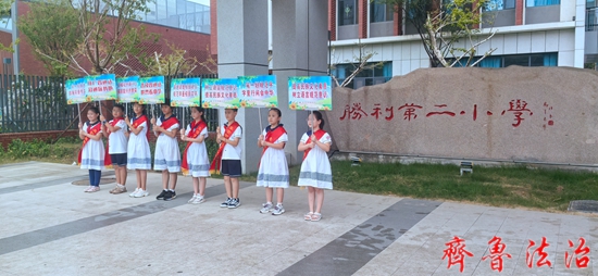齐鲁法治(东营讯)张观海 为引领广大未成年人自觉规范使用国家通用语言文字,增强民族团结意识,胜利二小结合民族团结促进月工作,在9月19日开展“石榴花开黄河口、四海同音传文明”第二十七届推普周活动。