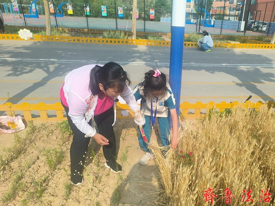 齐鲁法治(东营讯)张观海 东营区弘文小学聚焦立德树人根本任务,以实践劳动教育为引领,培育学生的全面发展。5月31日下午,东营区弘文小学开展了麦田实践劳动教育课程,学生亲身体验劳动的艰辛和收获的快乐。