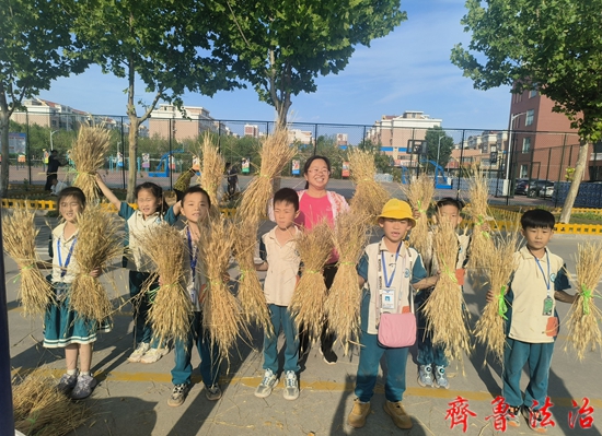 东营区弘文小学开展了麦田实践劳动教育课程,学生亲身体验劳动的艰辛和收获的快乐。
