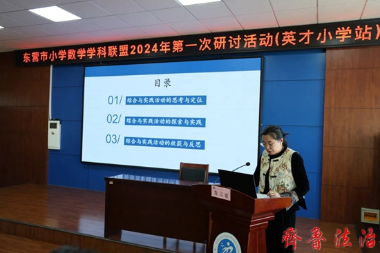 齐鲁法治(东营讯)张观海 为践行新课标育人理念,充分发挥教研联盟的联动作用,推动教师对小学数学“综合与实践”领域的探索与实践,聚焦学生数学核心素养及综合实践能力的培养。3月19日,东营市小学数学学科联盟2024年第一次研讨活动在东营经济技术开发区英才小学举行。