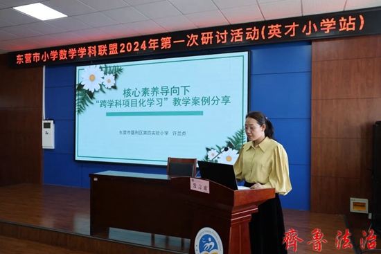 垦利区第四实验小学许兰贞老师立足四小数学跨学科项目化学习课程体系,分享了“我的校牌我设计”、“绘国旗庆国庆”、“神奇的小棒”等几个跨学科项目化学习案例,将课内延伸到课外,强化课程协同育人,提高学生问题解决的能力。