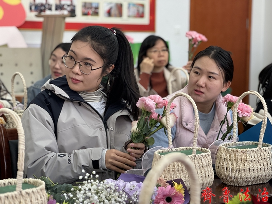 齐鲁法治(东营讯)张观海 在第114个“三八”国际妇女节到来之际,3月7日,东营区瀚文小学举办了以“跟党奋进新征程 巾帼建功新时代”为主题的花艺培训活动。