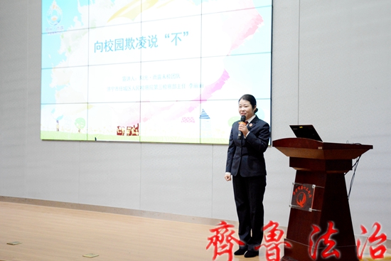 齐鲁法治(济宁讯)于清林 为切实维护青少年合法权益,有效预防校园欺凌和暴力事件的发生,近日,济宁市任城区检察院“阳光·雨露”未检团队走进济宁市第十三中学,开展以“开学第一课——‘070’(零欺凌)勇敢站出来”为主题的法治宣讲活动。