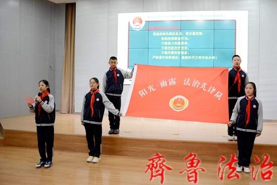 检察官还向学校赠送了“阳光·雨露法治先锋岗”旗帜,带领同学们进行“法治宣誓”。同学们用宏亮的嗓音,共同喊出了“不做暴力的施害者、不做沉默的受害者、不做冷漠的旁观者”誓言!