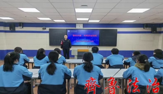 莘县职业中专联合燕塔派出所于2月27日开展了主题为“警校合育,共筑防线”的法治教育报告会。燕塔派出所民警郭庆伟、莘县反诈中心民警姜广安来学校指导并为同学们授课