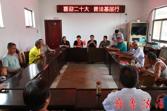 为营造高质量发展的法治氛围和稳定和谐的社会环境,以优异的成绩迎接党的二十大胜利召开,8月9日,济宁泗水县司法局在金庄镇尹家城村开展了法治宣传进乡村活动。