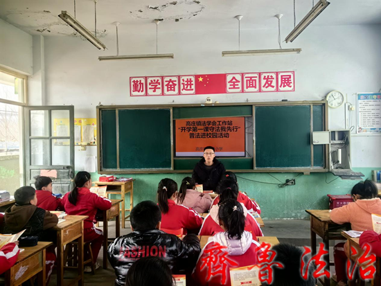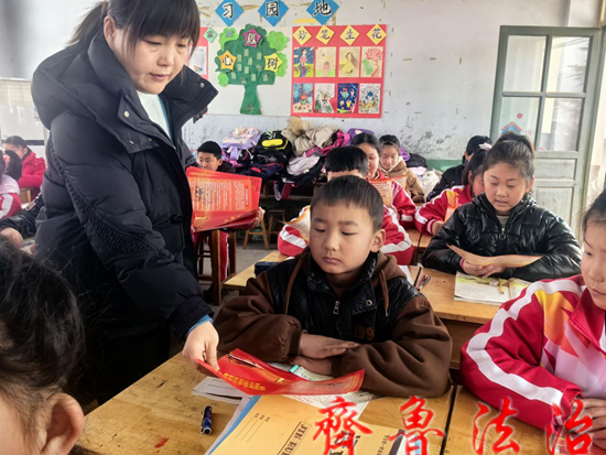 齐鲁法治(临沂讯)于清林 为增强青少年法治安全意识,维护校园安全稳定和学生合法权益,2月28日,临沂沂水县高庄镇法学会工作站组织了“开学第一课 守法我先行”普法进校园活动,高庄镇下里村小学师生参加了此次活动。