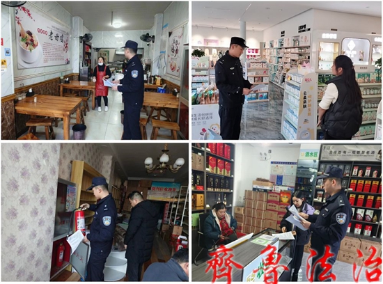 齐鲁法治(济宁讯)于清林 为进一步加强辖区“九小场所”安全管理工作,全面排查整治安全隐患,确保辖区安全形势稳定。近期,济宁嘉祥县公安局祥城派出所组织警力深入辖区“九小场所”开展安全检查工作。