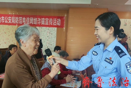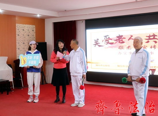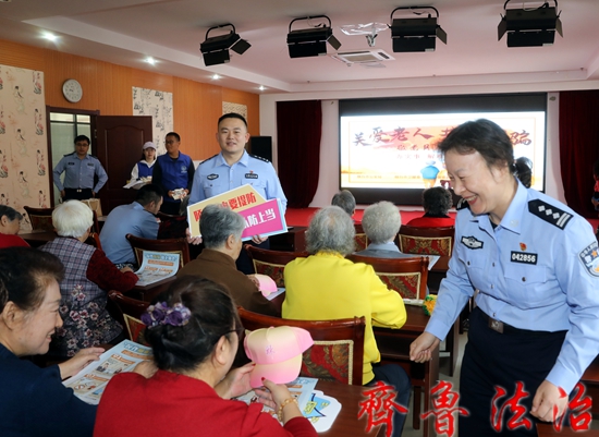 齐鲁法治(烟台讯)于清林 为进一步提高老年人的自我防范意识,有效预防电信网络诈骗,在全国第十四个“敬老月”来临之际,烟台市公安局联合烟台市卫健委走进医养结合机构开展“关爱老人 谨防诈骗”“为民办实事”敬老月防范诈骗主题宣传活动。