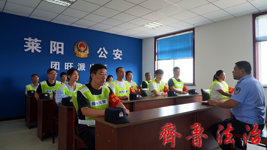 莱阳市公安局团旺派出所在践行“枫桥经验”中,积极联系发动群众,采取“报名制”和“点调制”相结合的方式,组织成立“爱在团旺”梨乡义警