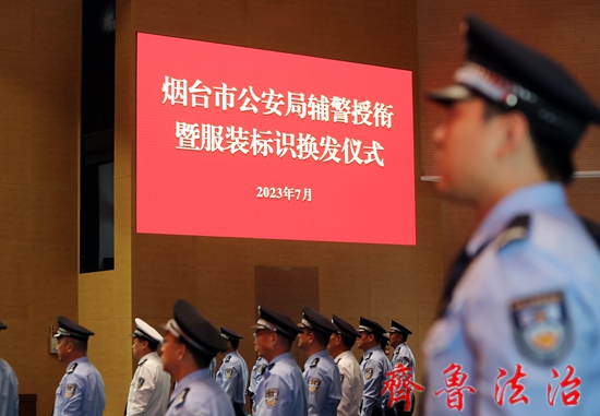 7月5日,烟台市公安局举行隆重仪式,为辅警授予新的辅警衔并换发新的服装标识。这是推进辅警管理改革的一项重大举措,标志着全市公安机关在辅警规范化、制度化、法制化管理迈上新台阶