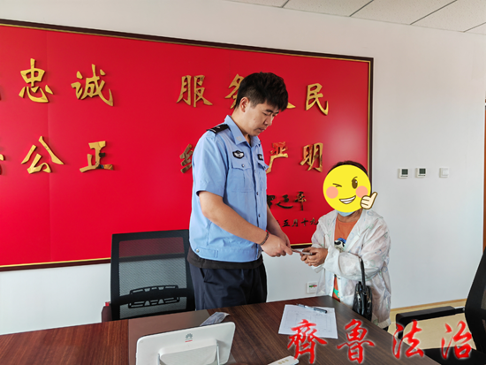 6月14日,孙先生和母亲来到派出所领回损失钱款,并向民警赠送锦旗致谢。