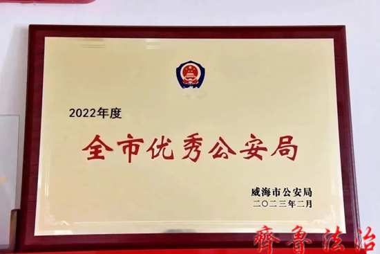 齐鲁法治(威海讯)马丹鸣 2月16日,威海市公安局长会议召开。会上,威海市公安局经区分局被表彰为“2022年度全市优秀公安局”。