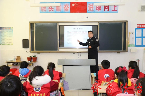 齐鲁法治(烟台讯)于清林 2月13日,是小学生开学的第一天,烟台市公安局福山分局禁毒大队的民警辅警走进辖区福海路小学,给小学生们上了一堂“别有趣味”的禁毒宣讲课,民警通过PPT放映,通俗易懂地讲解了什么是毒品、毒品的危害以及新型毒品的伪装性,并通过有奖问答的互动环节,让小小少年们积极参与的同时,对毒品有了更加深刻地了解。