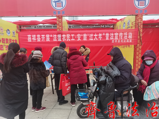 齐鲁法治(济宁讯)于清林 “大哥,你外出务工,一定要跟老板签合同,学会用法律武器保护自己……”济宁嘉祥县法律援助中心法律援助普法宣讲员耐心地为现场群众解疑释惑。时至年关,济宁嘉祥县法律援助中心多措并举,充分发挥法律援助在保障农民工权益方面的重要作用,进一步畅通农民工维权渠道,用法治护航农民工返乡过年,切实维护农民工合法权益。1月31日,嘉祥县法律援助中心在县体育馆开展“法援农民工·安‘薪’过大年”普法宣传活动,主动靠前深入“第一线”,面对面为现场农民工提供优质高效的法律服务。