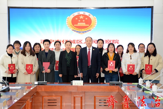仪式上,任城区检察院党组书记、检察长宋兰军与区妇联党组书记、主席文静共同签署了协作配合机制文件,并为15名妇女维权工作者颁发了公益诉讼观察员聘书。