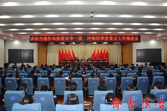 齐鲁法治(济宁讯)李春军 10月23日,山东省济宁市任城区检察院召开冲刺四季度重点工作推进会,会议紧紧围绕深入贯彻落实近期省市区系列工作会议精神,传达通报有关情况,总结阶段工作成绩,分析问题短板,安排部署下步工作任务。该检察院党组书记、检察长宋兰军出席会议并讲话。
