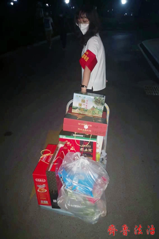 十几名志愿者分工明确,有人负责和超市对接,将门牌号码写在物品包装带上,有人负责将物资装到平板车上,我的工作则是将平板车推到单元楼下,按门铃通知大家领取。