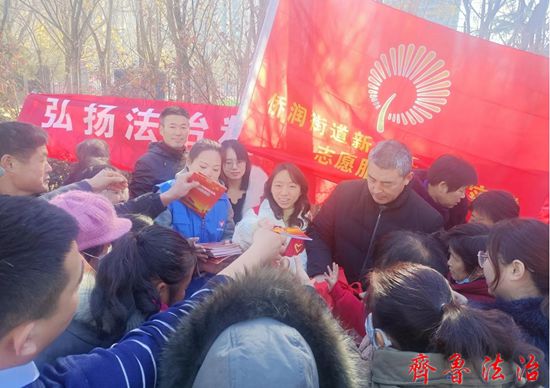 齐鲁法治(聊城讯)张加强 2021年12月4日是第八个国家宪法日,为进一步弘扬宪法精神,维护宪法权威,推动宪法宣传教育形成新热潮,根据上级部门部署要求,结合我辖区实际,12月4日上午,阳谷县司法局侨润司法所联合侨润街道综治办、妇联、法律普及志愿服务队在侨润街道辖区开展了以“以习近平法治思想为指引,坚定不移走中国特色社会主义法治道路”为主题的宪法宣传教育活动。