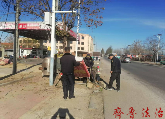 齐鲁法治(青岛)吕高波 针对旧店镇街道广告牌占道摆放的问题,既影响居民出行、给交通带来安全隐患问题,又影响镇容镇貌,为了还居民一个整洁、有序的镇容环境,12月25日,旧店镇综合行政执法中队党支部组织开展驻地占道广告牌现象集中治理行动。
