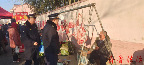 近日,平度市凤台街道综合行政执法中队对何家楼集市售卖猪肉的商铺开展全面集中检查,着重查验猪肉防疫证明文件,确保肉类产品来源合法、质量可靠、防疫达标。