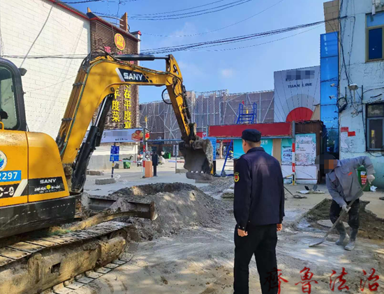 齐鲁法治青岛吕高波 擅自挖掘城市道路的行为不仅影响城市形象,还严重影响行人和车辆的出行安全。近日,平度市东阁街道综合行政执法中队党支部本着“为人民管理城市”的服务理念,以文明城市创建为抓手,严管重罚擅自挖掘城市道路行为,维护市政道路安全畅通。