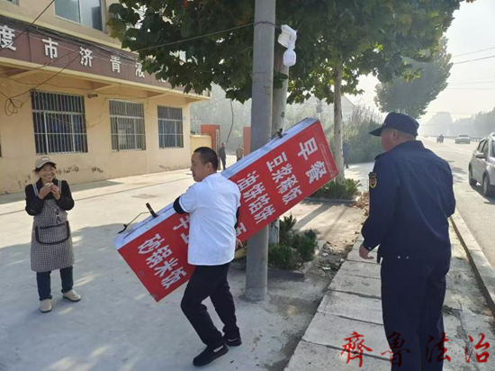 齐鲁法治(青岛)吕高波 为进一步规范户外广告管理,杜绝安全事故,消除安全隐患,提升镇域环境秩序,维护城市立面形象,近日,崔家集镇综合行政执法中队党支部开展了户外广告排查整治行动,及时排查整治违规设置的广告招牌,清除小广告等城市“牛皮癣”,规范了辖区内广告设置秩序,提升了镇驻地整洁度。