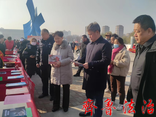 齐鲁法治(聊城讯)于清林 为深入贯彻落实习近平法治思想,大力加强宪法学习宣传,强化宪法意识,弘扬宪法精神,12月4日,由聊城临清市委政法委、市委宣传部、市委依法治市办、市司法局牵头组织全市45家单位在法治文化广场集中开展“大力弘扬宪法精神,建设社会主义法治文化”普法宣传活动,市委常委、政法委书记孙晓强,市委常委、宣传部部长杜东平,市政府党组成员、副市长、公安局党委书记、局长王珏,市司法局党组书记王光峰等现场指导。