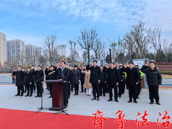 12月4日,临沂临沭县在人民公园举行“12·4”国家宪法日、宪法宣传周暨山东省法治宣传教育月启动仪式,县人大常委会副主任孟凡峰、县人民检察院检察长姚晓东出席启动仪式。