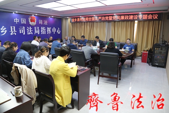 近日,济宁金乡县司法局党组组织召开扩大会议,就当前和今后一个时期全面从严治党和党风廉政建设工作再动员、再部署,通过抓实全面从严治党、落实党风廉政建设责任制