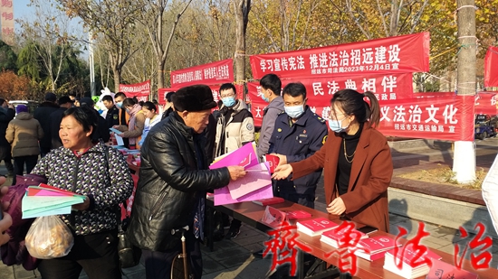 齐鲁法治(烟台讯)龙艳妮 今年12月4日是第十个国家宪法日。为深入学习贯彻习近平法治思想和文化思想,大力弘扬宪法精神,建设社会主义法治文化。12月4日上午,烟台招远市委宣传部、市委依法治市办、市司法局在市府前广场联合举办了“12·4”国家宪法日集中宣传活动。全市20余个部门单位参加了宣传活动。